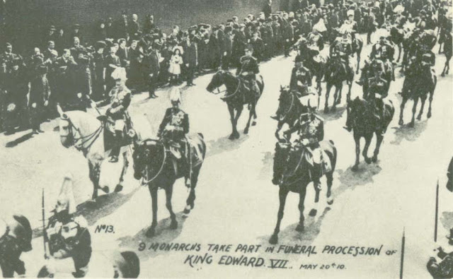 El entierro fue el inicio del fin de muchas monarquías. El asesinato cuatro años después, del también asistente al funeral, el Archiduque de Austria, Francisco Fernando, origino la primera Gran Guerra derrumbando muchas dinastías reales de Europa. Manuel II de Portugal meses después de esa foto, el 5 de octubre de 1910 debido a una revolución en su país, tuvo que huir a Gibraltar con toda la familia real.